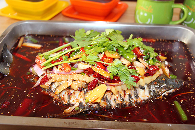 萬州烤魚屬于重慶特色傳統(tǒng)名菜,萬州烤魚把魚剖洗凈后平放在鐵夾中,放在爐上用木炭燒烤,盛到專用鐵盤中,澆上用牛油、紅油、白糖、花椒、辣椒等調(diào)味品炒出底料,放上西芹、豆芽等爽口菜??谖断汤薄2捎?ldquo;先烤后燉”的獨(dú)特做法,將烤與燉的精華相互融合。